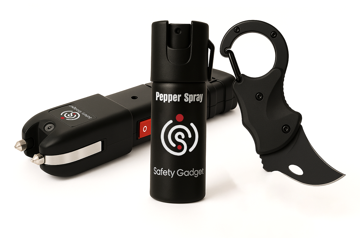 Our ultimate safety trio—pepper spray, SafeZap Pro, and a multipurpose keychain—delivers reliable, all-around protection in a compact, everyday-carry setup.
