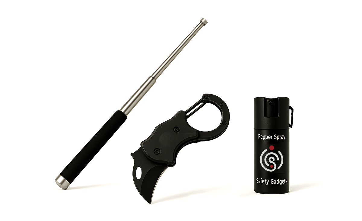A compact, everyday safety trio designed for instant protection. The expandable baton, utility keychain, and pepper spray work together to keep you prepared and confident wherever you go.
